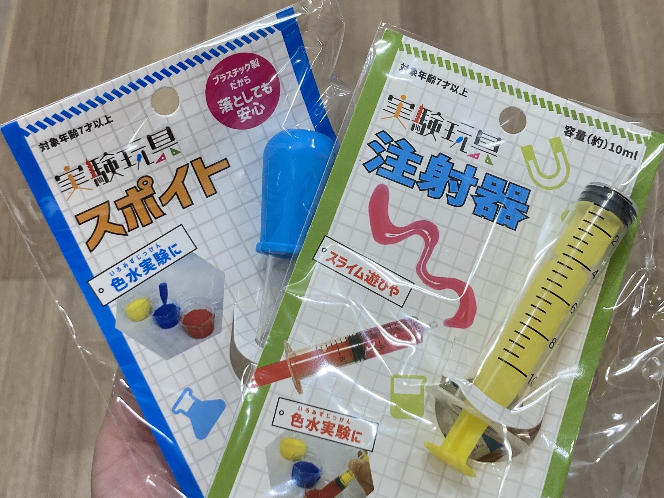 下の画像は実験玩具の注射器です。同じシリーズのスポイトもおすすめ♩