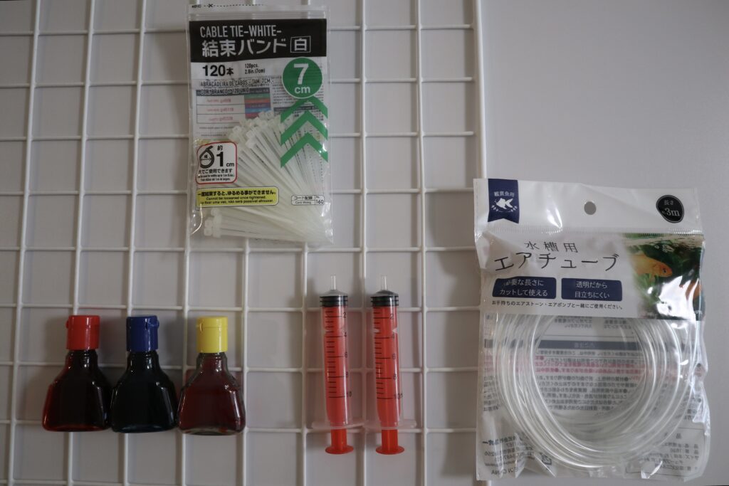注射器は、以下のものがエアチューブの太さにぴったりでおすすめ!いずれもセリアのおもちゃコーナーに販売されています。