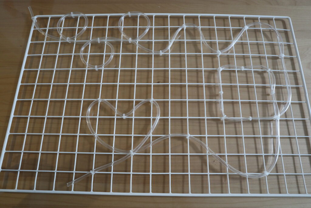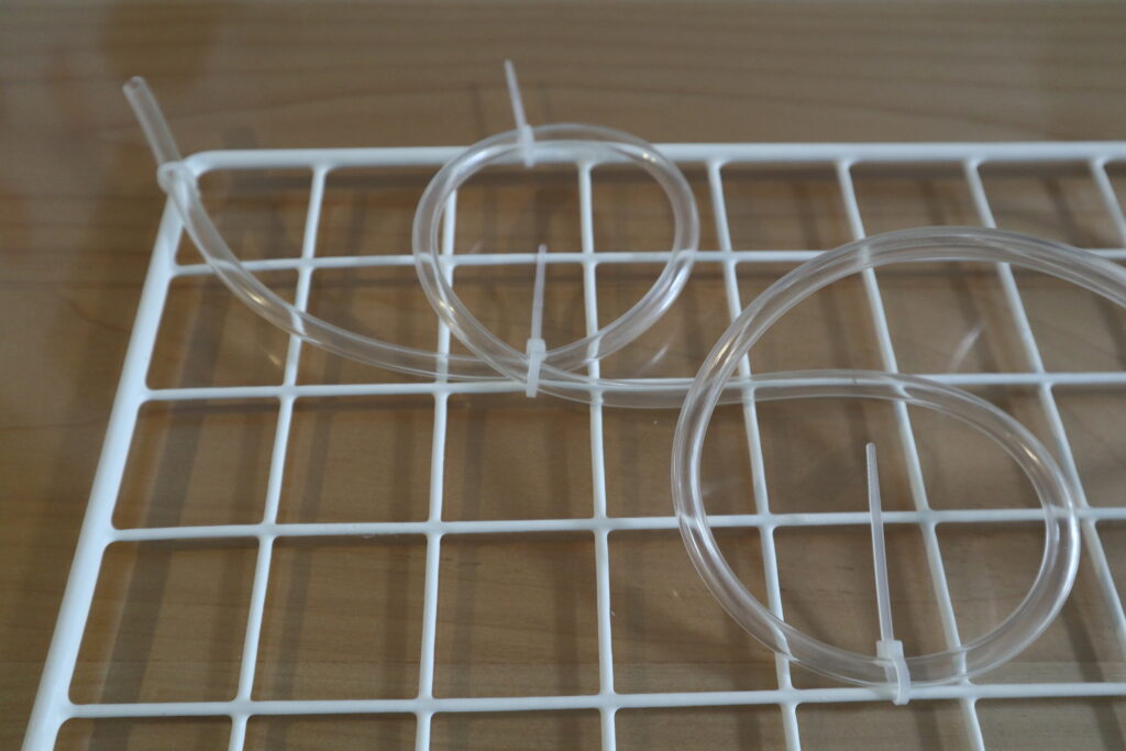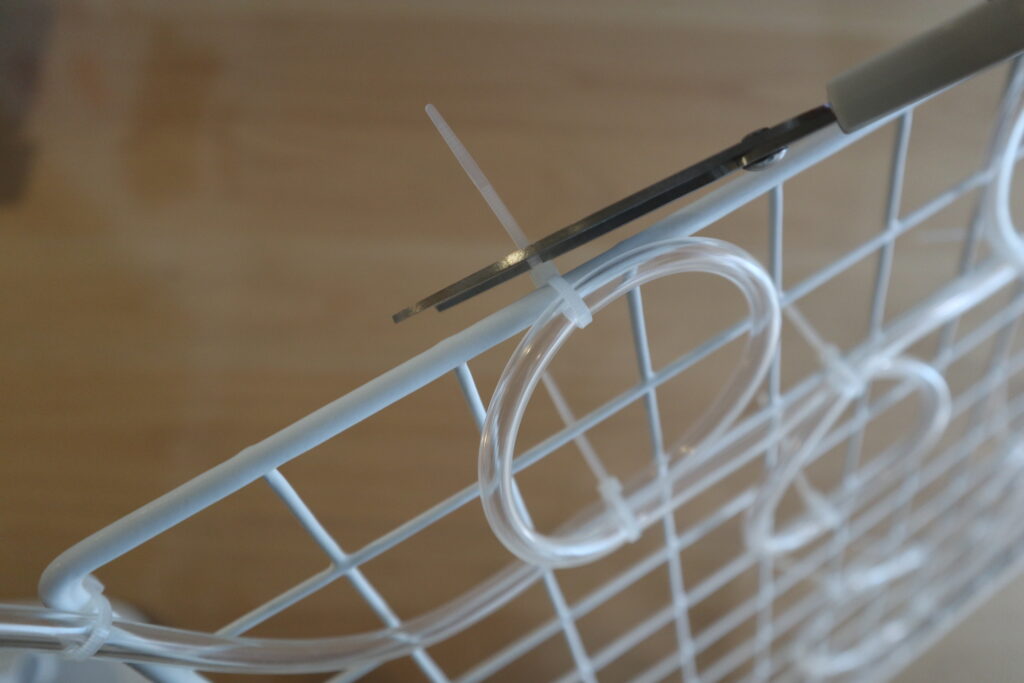 ・ワイヤーネットの上の方から結束バンドでエアチューブを留めていく