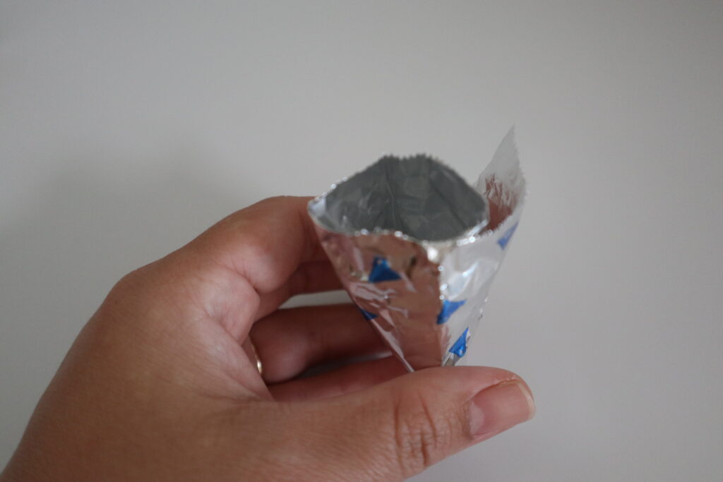 ・アルミホイルを10cm×15cm程度の大きさにカットする