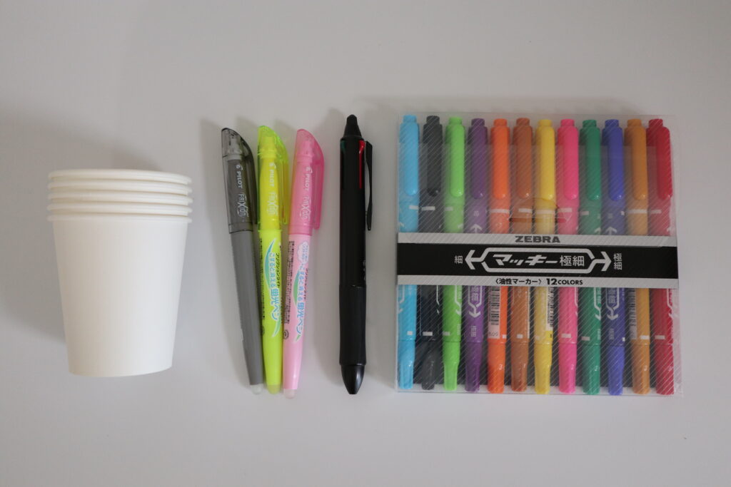 今回は、フリクションペンの特徴を使って、お湯を注ぐと消える不思議な絵を描いてあそんでみました。