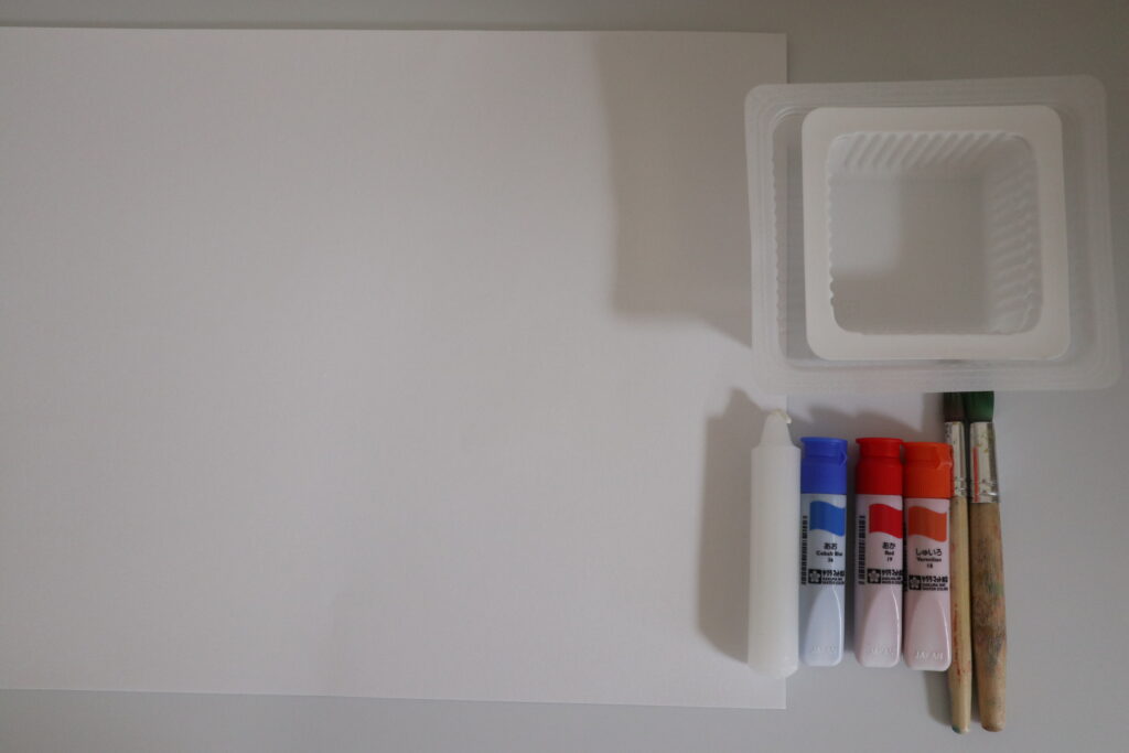 絵の具に使う容器は豆腐の容器を使いました!終わったら捨てられて便利♩