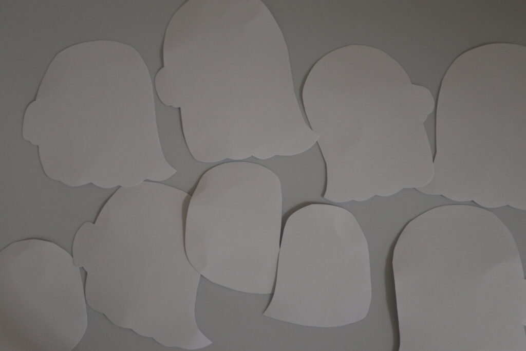 ・白い画用紙をおばけのかたちに切る