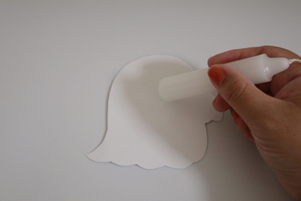 ・白いクレヨンやろうそくで、おばけの顏や手を描く