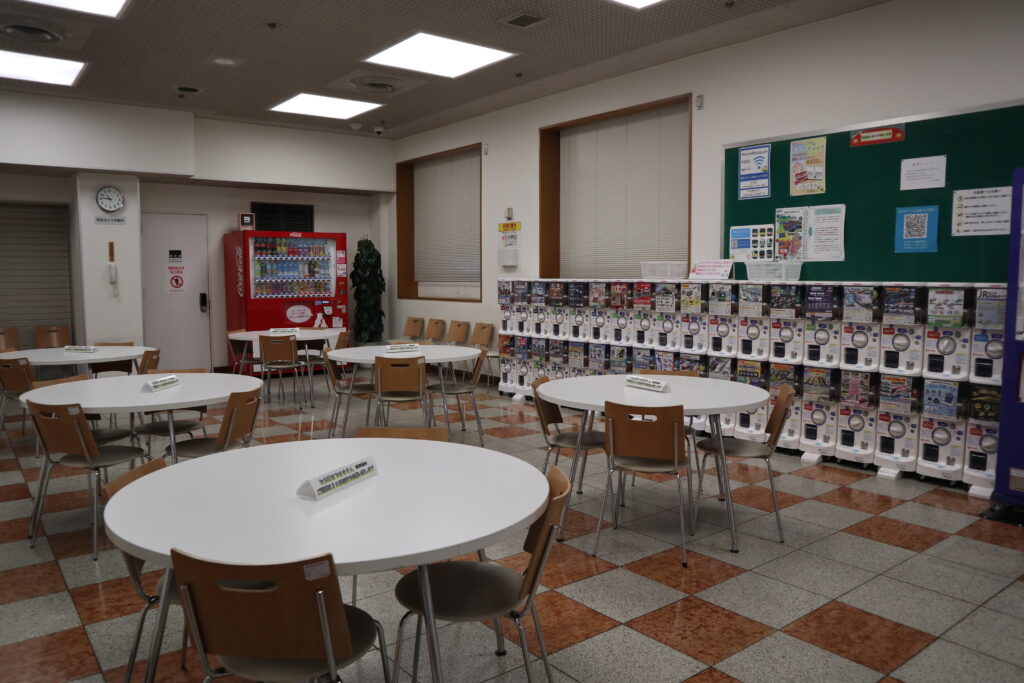 一番奥には休憩スペースもあります。持ち込みや食事は禁止ですが、自動販売機があり飲み物休憩が可能です。他にも授乳室やベビーカーの貸出もあり、子ども連れに嬉しい設備が揃っていました。