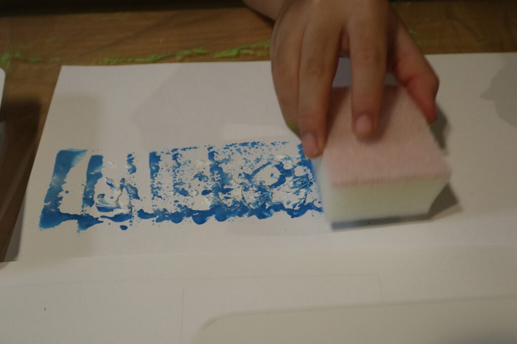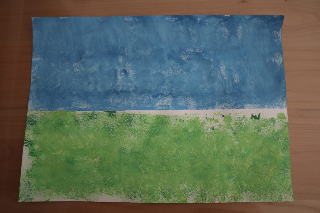 今回は時間があったので、スポンジで背景も描いてみました◎もちろんそのまま白い背景でも、色画用紙に貼り付けても色が映えてキレイ!