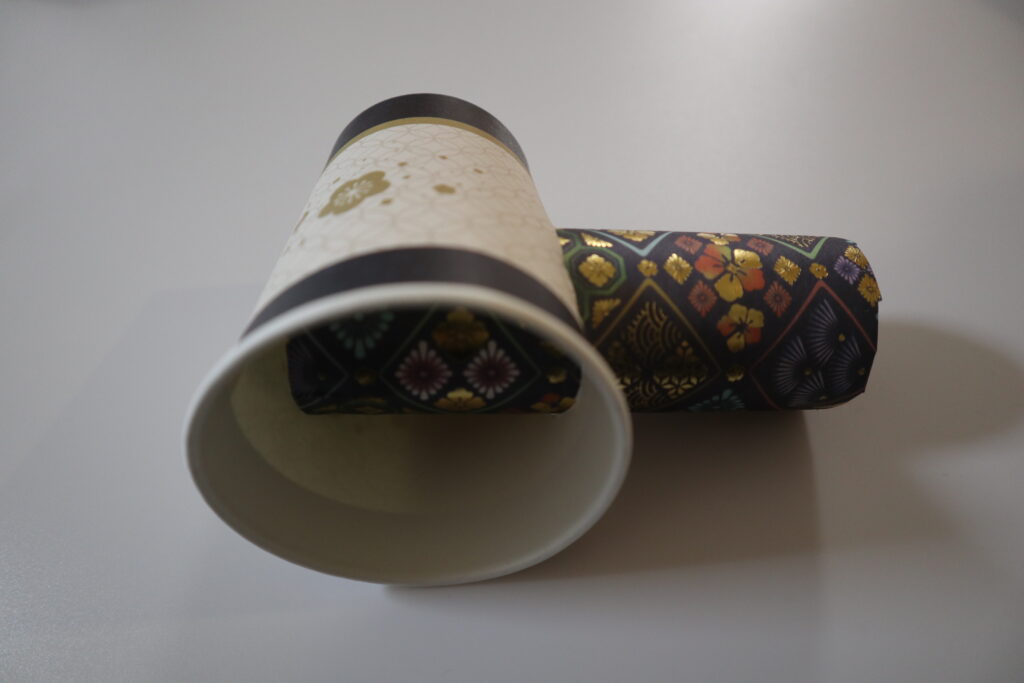 こちらはセリアの紙コップと千代紙です。千代紙も箔押しされているようにキラっと光沢のあるデザインで、お正月にぴったり♩
