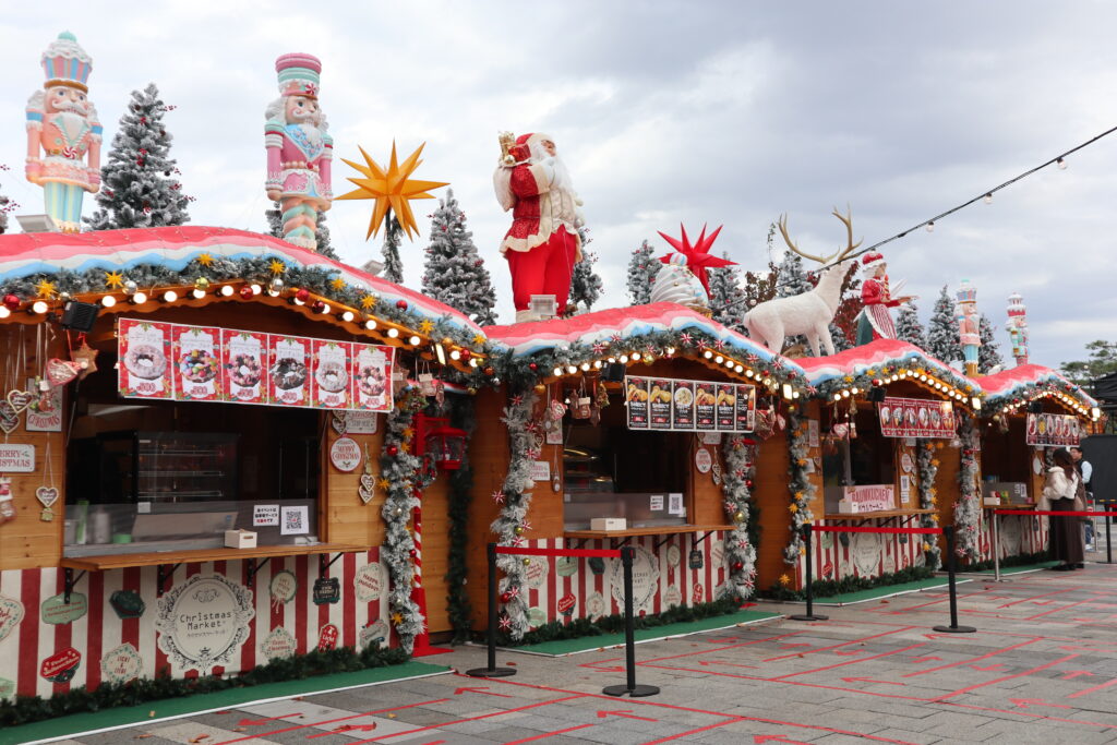 4階を移動していると、途中にある屋外の「スカイアリーナ」ではクリスマスマーケットが!入場無料で、クリスマスの雰囲気やフードを楽しむことができます♩